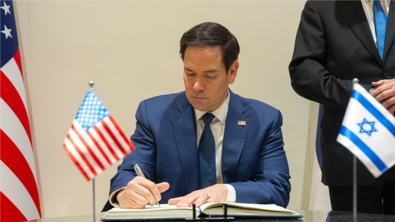 آقای روبیو در بیانیهای گفت تصمیم رئیس جمهوری فرانسه تنها در خدمت تبلیغات سیاسی حماس است و «صلح را به عقب میراند.»