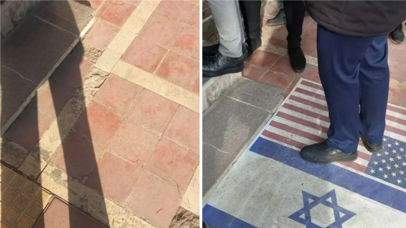 پرچم آمریکا بر زمین ورودی ساختمان یادشده نقاشی شده بود و مراجعان برای ورود به این ساختمان مجبور به عبور از روی آن بودند.