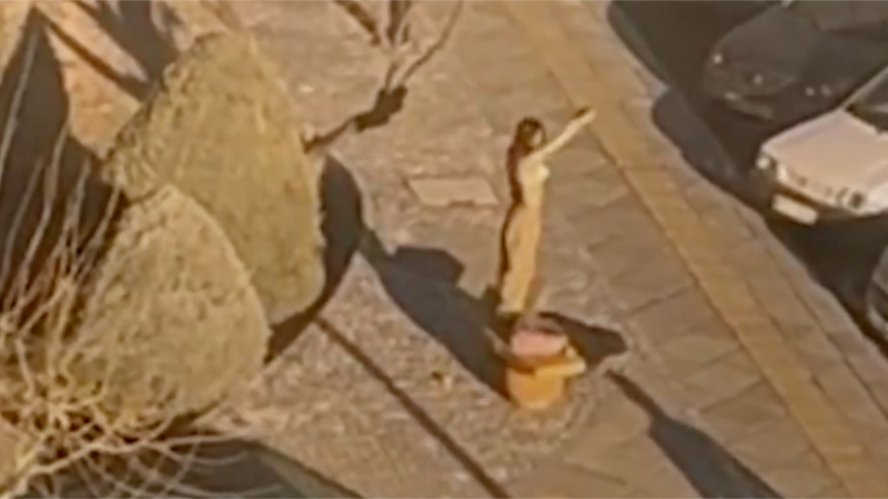 بر اساس این ویدئو، رهگذران بدون نگاه کردن به این زن جوان از کنار او عبور میکنند.