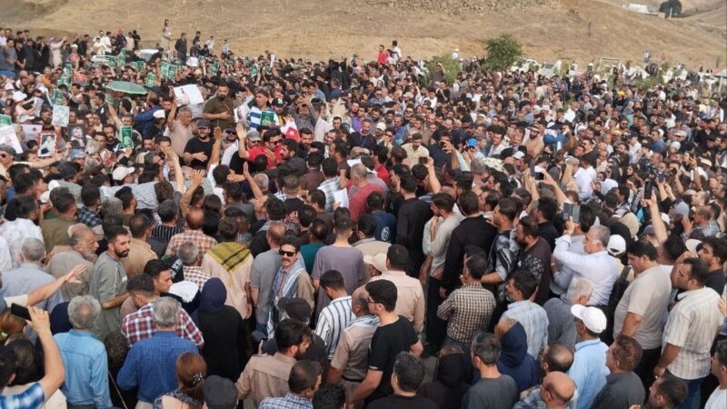 در برخی گزارشهای ویدئویی منتشر شده در رسانههای اجتماعی، جمعیت قابل توجهی از حاضران در مراسم خاکسپاری خبات امینی، سومین امدادگر جانباخته، شعارهایی به زبان کردی با مضمون این که نیروهای سپاه جمهوری اسلامی مسئول این جنایت هستند، سر دادند.