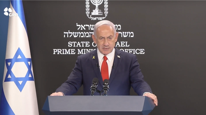 نتانیاهو عامل نسلکشی را «محور [جمهوری اسلامی] ایران» خواند و گفت شبکه نیابتی جمهوری اسلامی «آشکارا خواهان نابودی و محو اسرائیل و بسیاری از یهودیان است. آنها خواهان مرگ آمریکا هستند. اما مردم متوجه نمیشوند که این تلاش (علیه آمریکا) با [تلاش برای] نابودی اسرائیل آغاز میشود، چون ما سد راهشان هستیم.»
