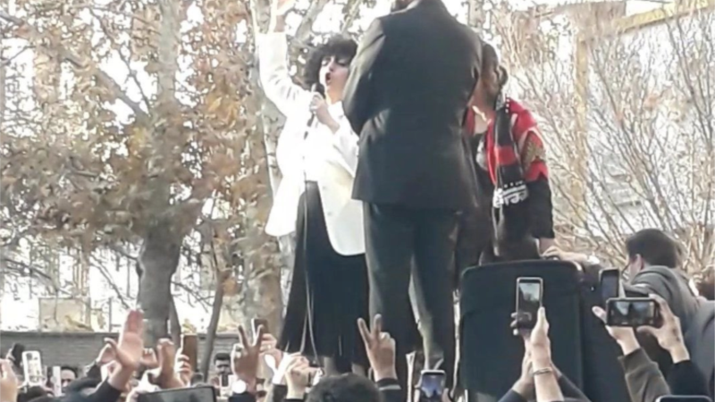 در یکی از ویدئوها نرگس محمدی و سپیده قلیان دیده می‌شوند که در میان شعارهای جمعیت به بالای یک خودرو می‌روند و شعارهایی ازجمله «زنده‌باد ایران» سر می‌دهند.