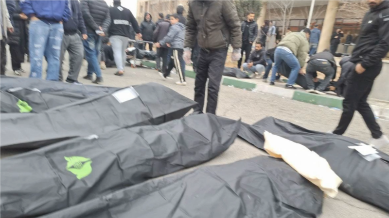 تصاویر منتشرشده از مرکز پزشکی قانونی کهریزک (در جنوب تهران) بین ۲۱ تا ۲۳ دی، دست‌کم ۴۰۰ جسد یا کیسه جسد را نشان می‌دهد؛ آماری که به گفته دیدبان حقوق بشر کمتر از واقعیت است، زیرا اجساد روی هم انباشته شده بودند.