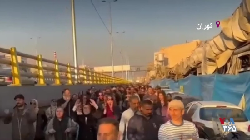 راهپیمایی و شعار اعتراضی کسبه‌ زیان‌دیده از آتش‌سوزی بازار «جنت» تهران – صدای آمریکا