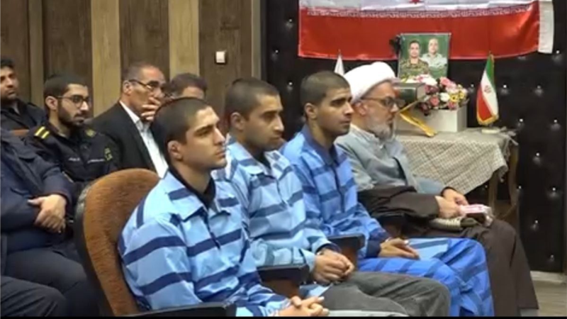 گزارش قوه قضاییه ایران مدعی است این سه مرد جوان در جریان اعتراضات ۱۸ دی، با استفاده از «انواع سلاح سرد» بهطور جداگانه با «حملهور شدن» به دو نفر از مأموران فراجا و «پرتاب شمشیر، چاقو و قمه» آن دو را به قتل رساندند.